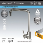 - Mezcladora Monomando, Acabado Níquel Satinado, Cuerpo de Acero Inoxidable.