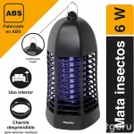 Además, su estructura compacta y ligera permite una instalación rápida en diversas ubicaciones interiores. Puede colocarse en estantes, mesas o enchufarse directamente en una toma eléctrica cercana al área donde se requiera eliminar insectos.