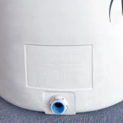 Este tinaco está fabricado con polietileno 100% virgen, lo que garantiza una estructura robusta, ligera y sin riesgo de contaminar el agua. Su diseño tricapa, a diferencia de los tinacos comunes, ofrece mayor protección contra los rayos UV y evita la formación de bacterias en su interior. La capa exterior es resistente al sol, la capa intermedia funciona como barrera de protección, y la capa interna es grado alimenticio para mantener el agua en condiciones óptimas.